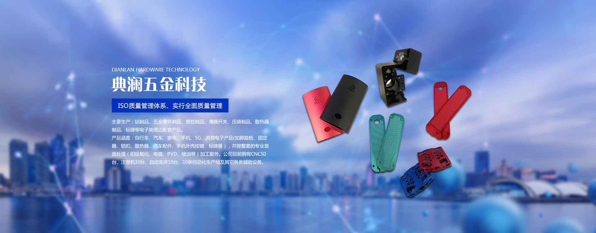 東莞市典瀾五金科技有限公司創(chuàng)立于2014年,坐落于歷史文化名鎮(zhèn)鳳崗,集研發(fā)、生產(chǎn)、銷(xiāo)售、售后服務(wù)為一體。距離深圳機(jī)場(chǎng)僅40分鐘車(chē)程、距離香港僅40分鐘車(chē)程。屬于粵港澳大灣區(qū)中心地帶! 主要生產(chǎn):鋁制品、五金零件制品、塑膠制品、薄膜開(kāi)關(guān)、壓鑄制品、散熱器制品、標(biāo)牌等電子類(lèi)周邊配套產(chǎn)品。 產(chǎn)品涵蓋:自行車(chē)、汽車(chē)、家電、手機(jī)、5G、消費(fèi)電子產(chǎn)品(如腳踏板、固定器、鎖扣、散熱器…